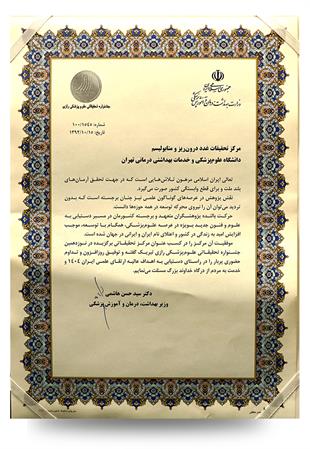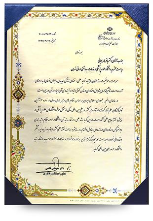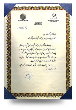 تقدیر برای کسب عنوان مرکز تحقیقات برگزیده در 23 امین جشنواره رازی سال 96