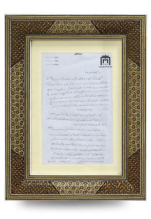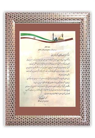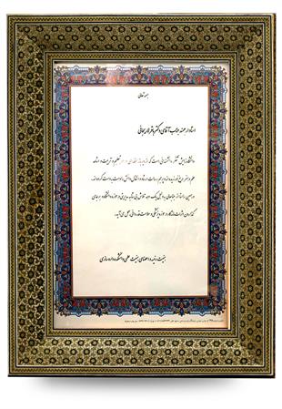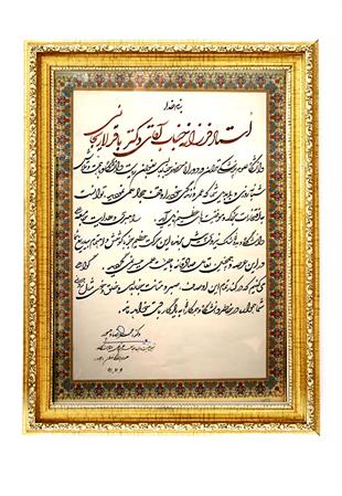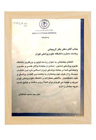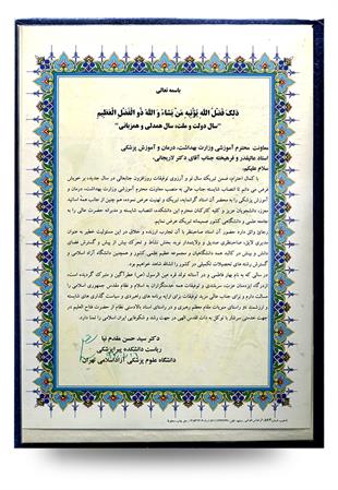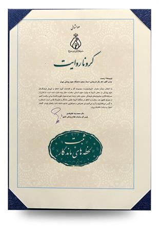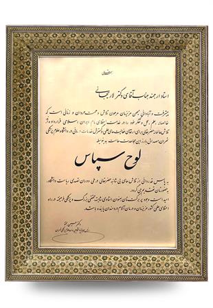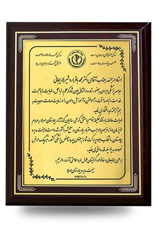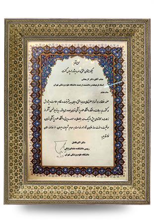 لوح اهدایی از طرف رییس دانشکده پزشکی دانشگاه علوم پزشکی تهران