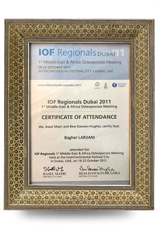 گواهی شرکت در نشست انجمن بین المللی پوکی استخوان سال 89