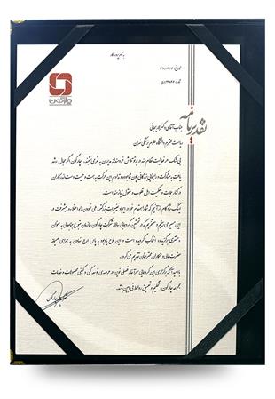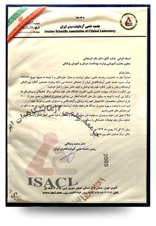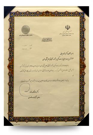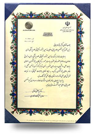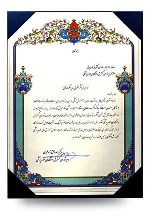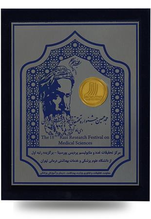 لوح تقدیر برای کسب عنوان مرکز تحقیقات برگزیده در 22 امین جشنواره رازی سال 95