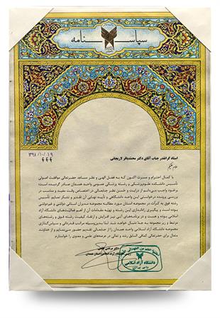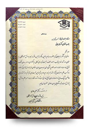 لوح تقدیر برای کسب عنوان پژوهشگر برجسته در 22امین جشنواره پژوهشی دانشگاه سال 92