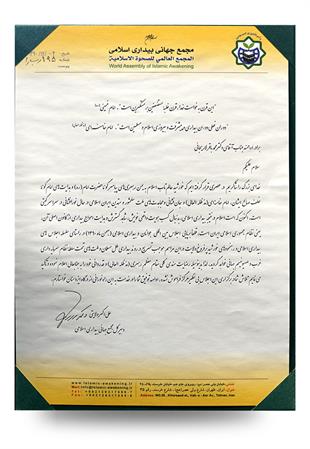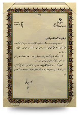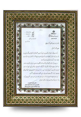 لوح تقدیر برای کسب عنوان مرکز تحقیقات برگزیده در 19 امین جشنواره رازی سال 92