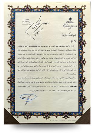 تقدیر دکتر وحید دستجردی برای تدوین نقشه تحول نظام سلامت سال 90