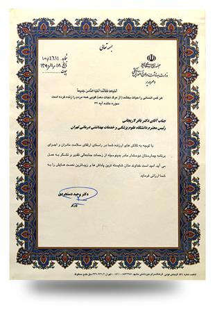 تقدیر رئیس دفاتر نهاد دانشگاههای علوم پزشکی تهران سال 90