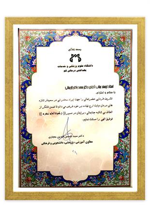 تقدیر دکتر سید شمس الدین حجازی،قائم مقام وزیر و سرپرست دانشگاه علوم پزشکی قم