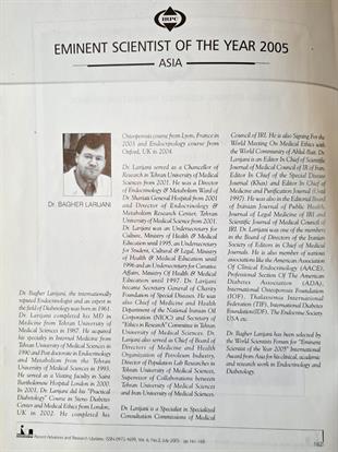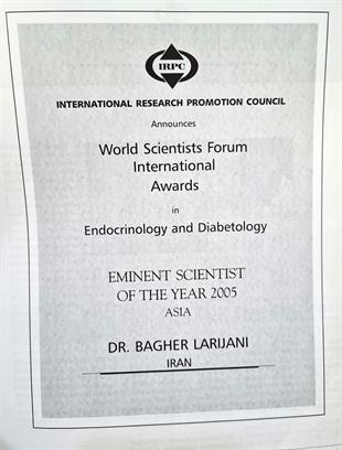 دانشمند برگزیده سال اتاق آسیادرحوزه بیماریهای غدد درون ریزودیابت ازسوی IRPC