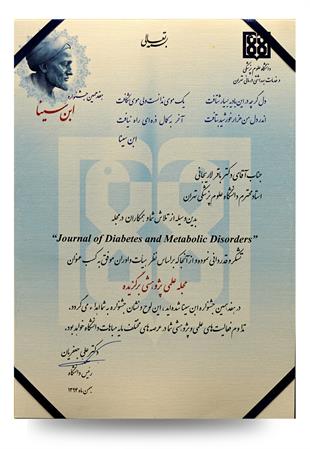 لوح تقدیر برای کسب عنوان مجله علمی پژوهشی برگزیده در 17امین جشنواره ابن سینا سال 94
